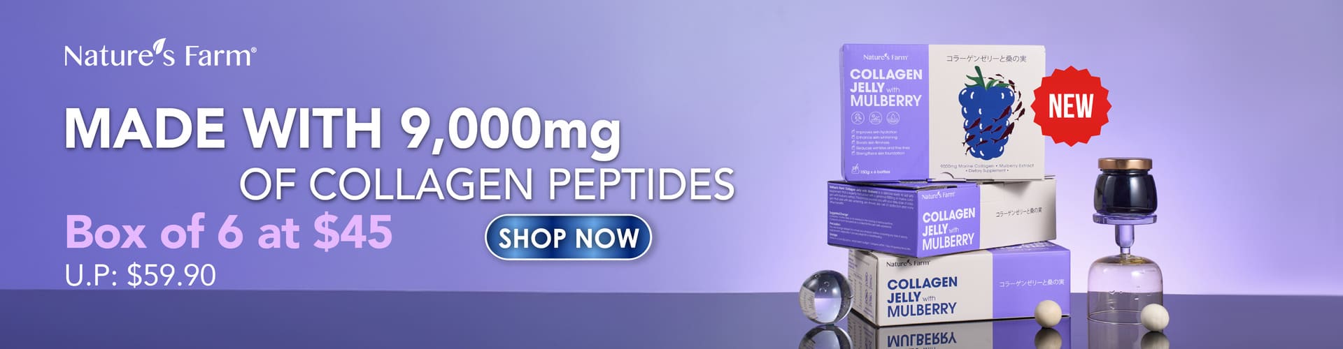 Nature's Farm Collagen Jelly with Mulberry is a delicious ready-to-eat jelly supplement that is expertly formulated with a generous 9000mg of marine collagen with mulberry extract. This formula provides you with your daily does of collagen that aids with skin whitening, skin firmness, skin cell UV protection and many other benefits.
