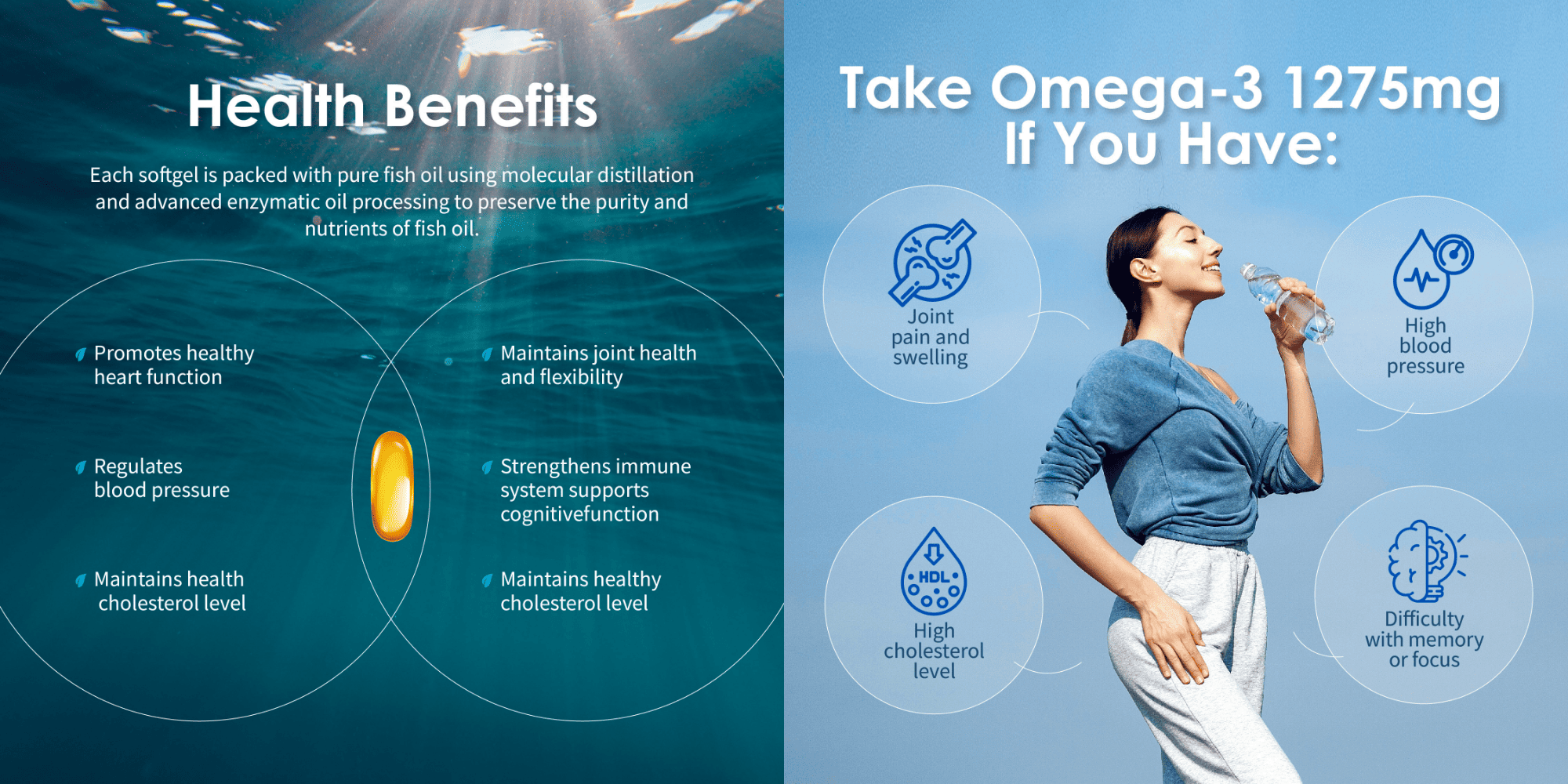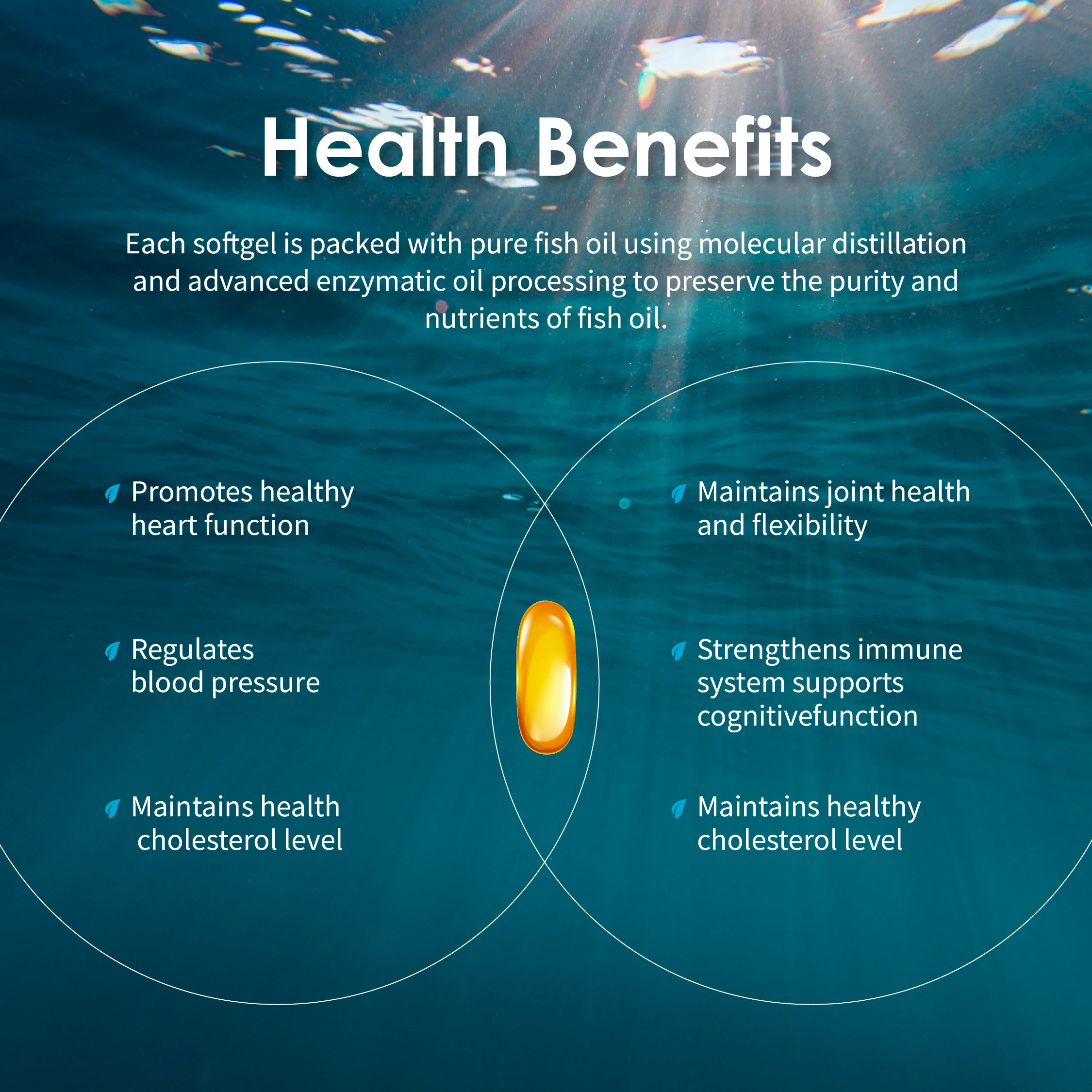Each softgel is packed with pure fish oil using molecular distillation and advanced enzymatic oil processing to preserve the purity and nutrients of fish oil.