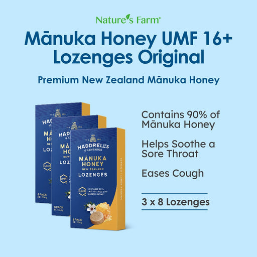 View full details[Bundle of 3] Haddrell's of Cambridge Manuka Honey UMF 16+ Lozenges Original, 8s