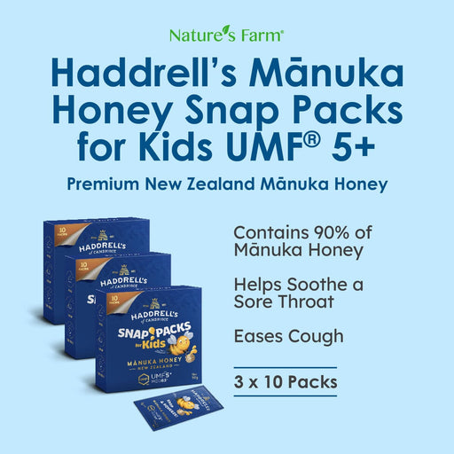 View full details[Bundle of 3] Haddrell's of Cambridge Snap Packs for Kids UMF 5+ Mānuka Honey