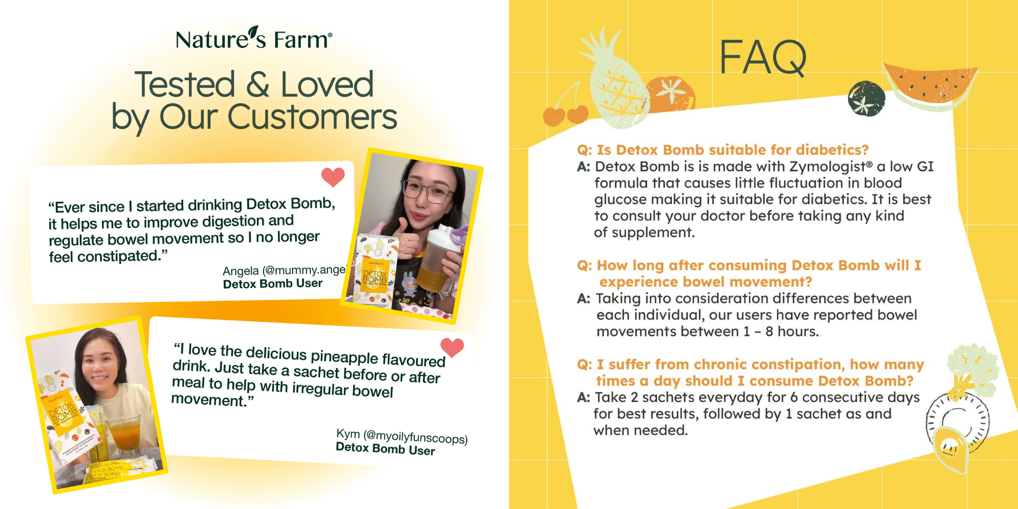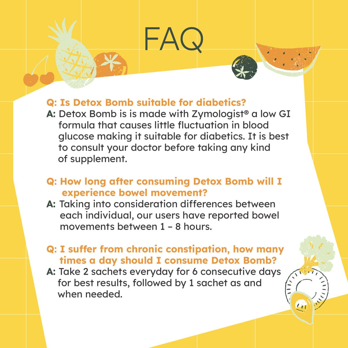 Mix 1 sachet into a glass of 120-150ml warm or cold water, stir well and drink. Take 1 sachet either before or after meal. For intensive cleanse, take 1 or 2 sachets daily for 6 days consecutively. Thereafter, take 1 sachet as and when needed.