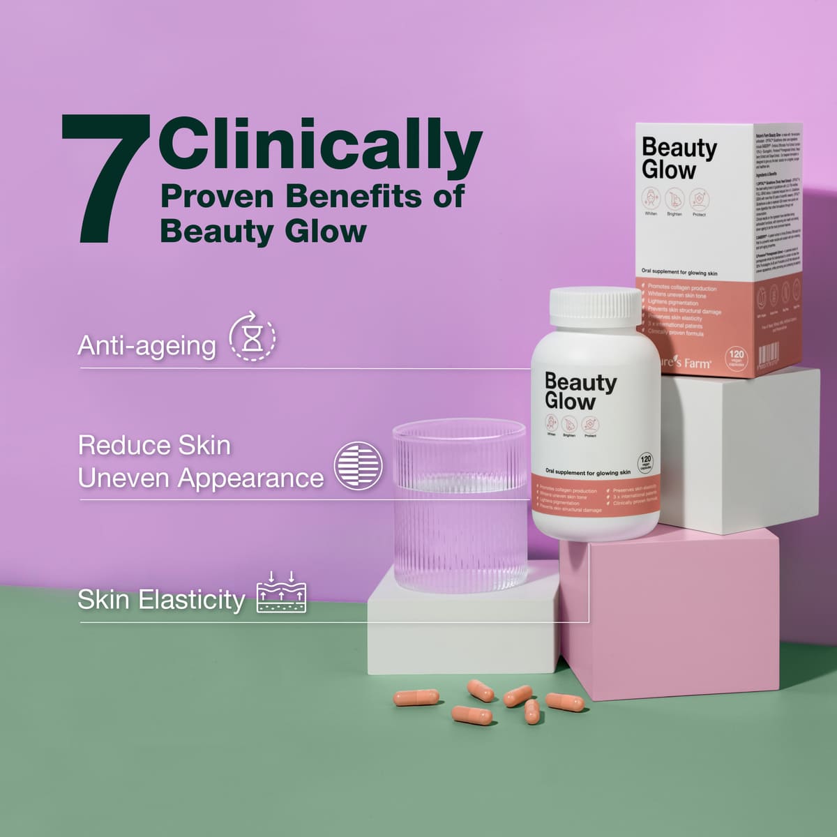 Nature’s Farm Beauty Glow is a beauty supplement that is formulated with 3 international patented ingredients backed by scientific clinical trials.
