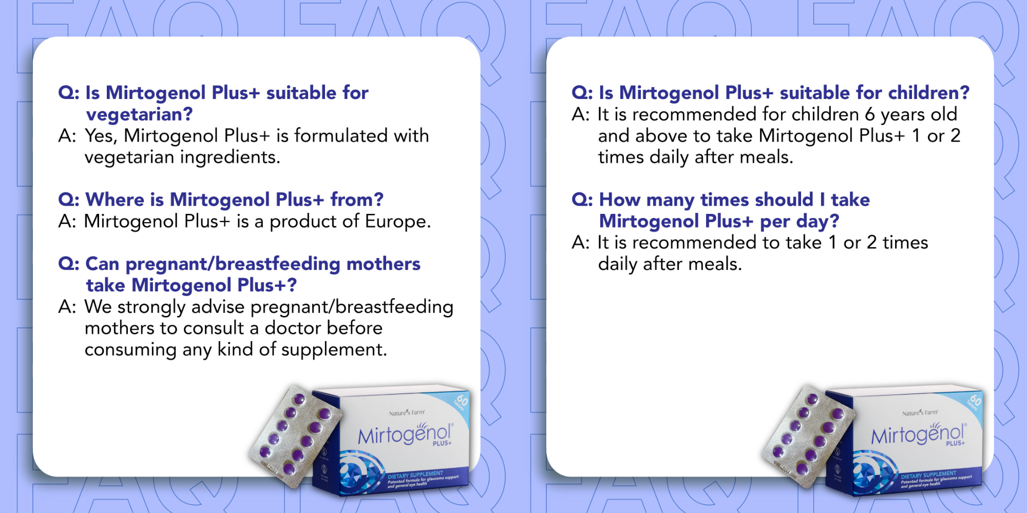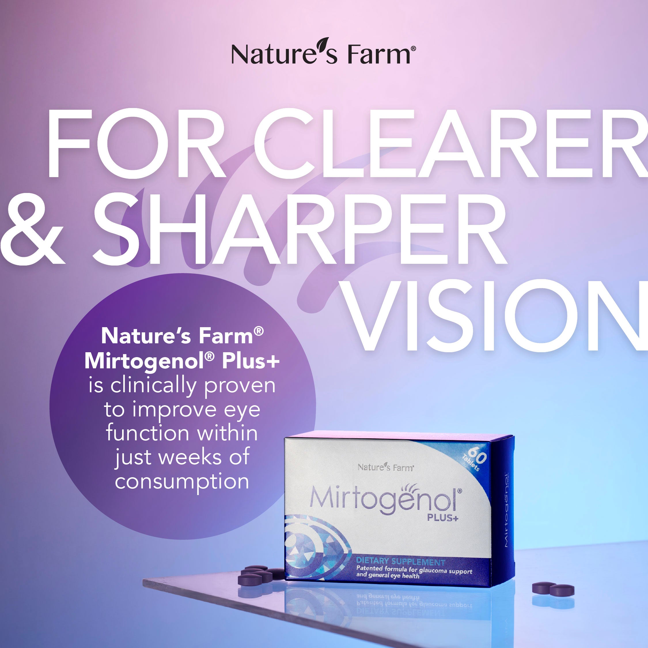 Developed by an Ophthalmologist and a group of scientists from UK and Italy, Nature’s Farm Mirtogenol® Plus+ is a clinically tested and formula with a proprietary combination of scientifically proven and trademarked ingredients that cater to support healthy eye function: Pycnogenol®️ (pine bark extract) and Mirtoselect®️ (bilberry extract).