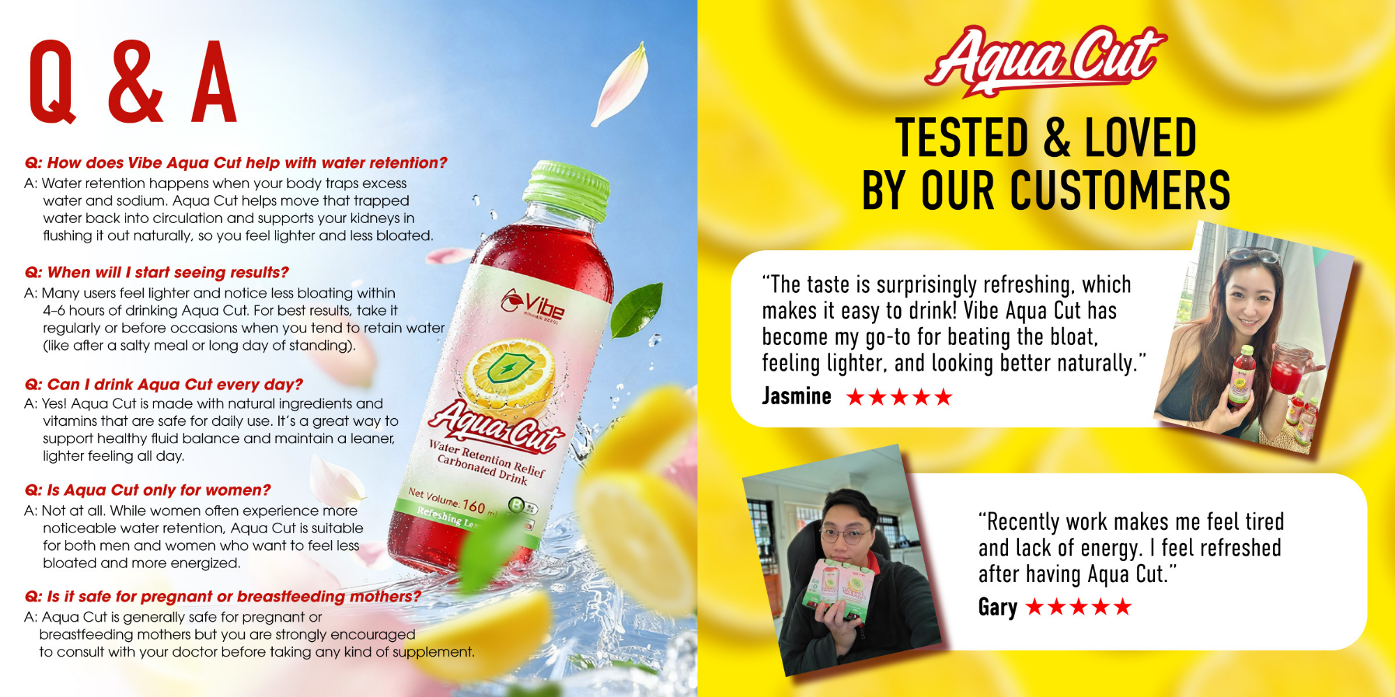 A: Yes! Aqua Cut is made with natural ingredients and vitamins that are safe for daily use. It’s a great way to support healthy fluid balance and maintain a leaner, lighter feeling all day.