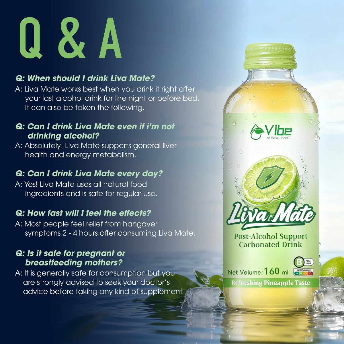 A: Liva Mate works best when you drink it right after your last alcohol drink for the night or before bed. It can also be taken the following.