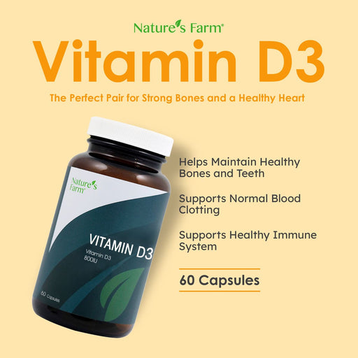 Contain 800IU of Vitamin D3 and 60mcg of Vitamin K2 in one capsule
